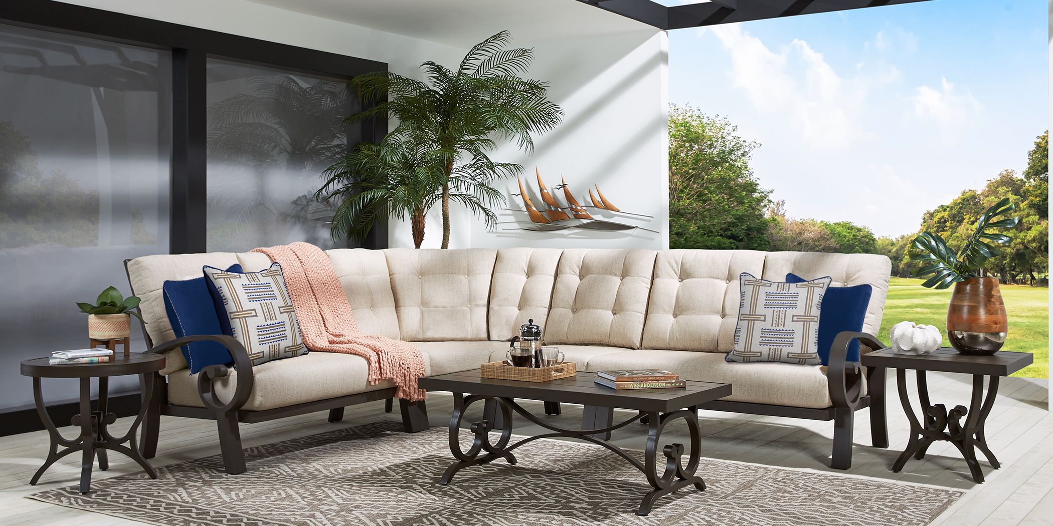 Sunset Beach Outdoor 4 Piece Sectional Set Patio And Home Direct from cdn.shopify.com Two textured neutral accent pillows and three additional accent pillows with a modern geometric print on one side pull together the entire look. Ann arbor 4 piece woven sectional set. Refit covers onto your cushions and. It includes two love seats, one • this 4pc sectional set consists of 2 loveseats, 1 corner chair and a large coffee table • powder coated rust resistant steel frame for durability. Perfect for small living areas. The sofa is set low, and the roomy se. Each section of couch has a removable back, but the corner section has 2 removable backs. So 2 of the couches along with their backs is 4 pieces.