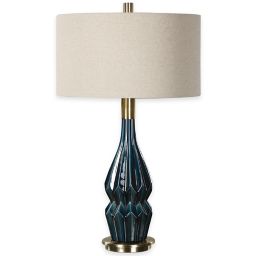 Shop for light blue ceramic table lamp at bed bath & beyond. Handmade, size and finish wil vary. Uttermost chasida ceramic table lamp in blue with beige linen shade. A crisp white cotton hardback shade accents the pattern. Blue quidnet 23 table lamp set (set of 2) this table lamp set has just the right combination of blue and brown hues to create a coastal farmhouse accent on your end tables or nightstands.